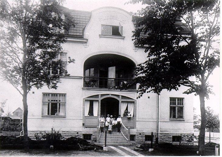 Huset vid korsningen S:t Olofsgatan - Eriksgatan, mitt emot gamla hattfabriken. Det är byggt 1910. Förste ägare var Loke Larsson-Fahlgård som flyttade till Norrköping omkirng 1925. Huset var det första i Falköping som var försett med centralvärme.