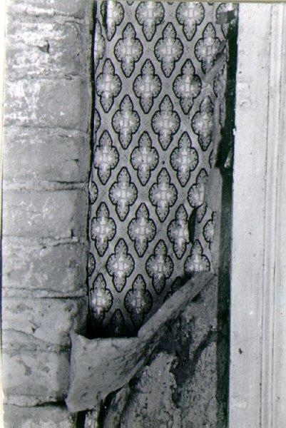 Abrahamsgården. Gammal pappperstapet på vindsrummet i manbyggnaden.