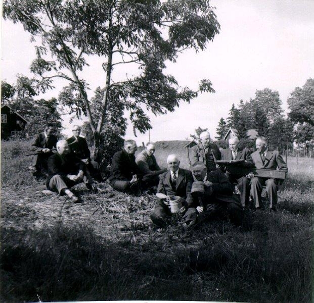 Byalag Jättene 1961. Personer från vänster. Bild 1. Erik Darius, Gilbert Larsson, Backg. 3. Tage Lindqvist, (Korvagården) Folkagården, (Ängaledet?), 4. Ragnar Larsson, Backg. 5. Anders Vilhelmsson, Skatteg. 6. Herman Larsson, Bosg. 7. Karl Svensson (Svenne-Karl), 8. Sven Larsson, Bosg. 9. Gustav Henriksson, Jäppag. 10. Linnar Andersson.