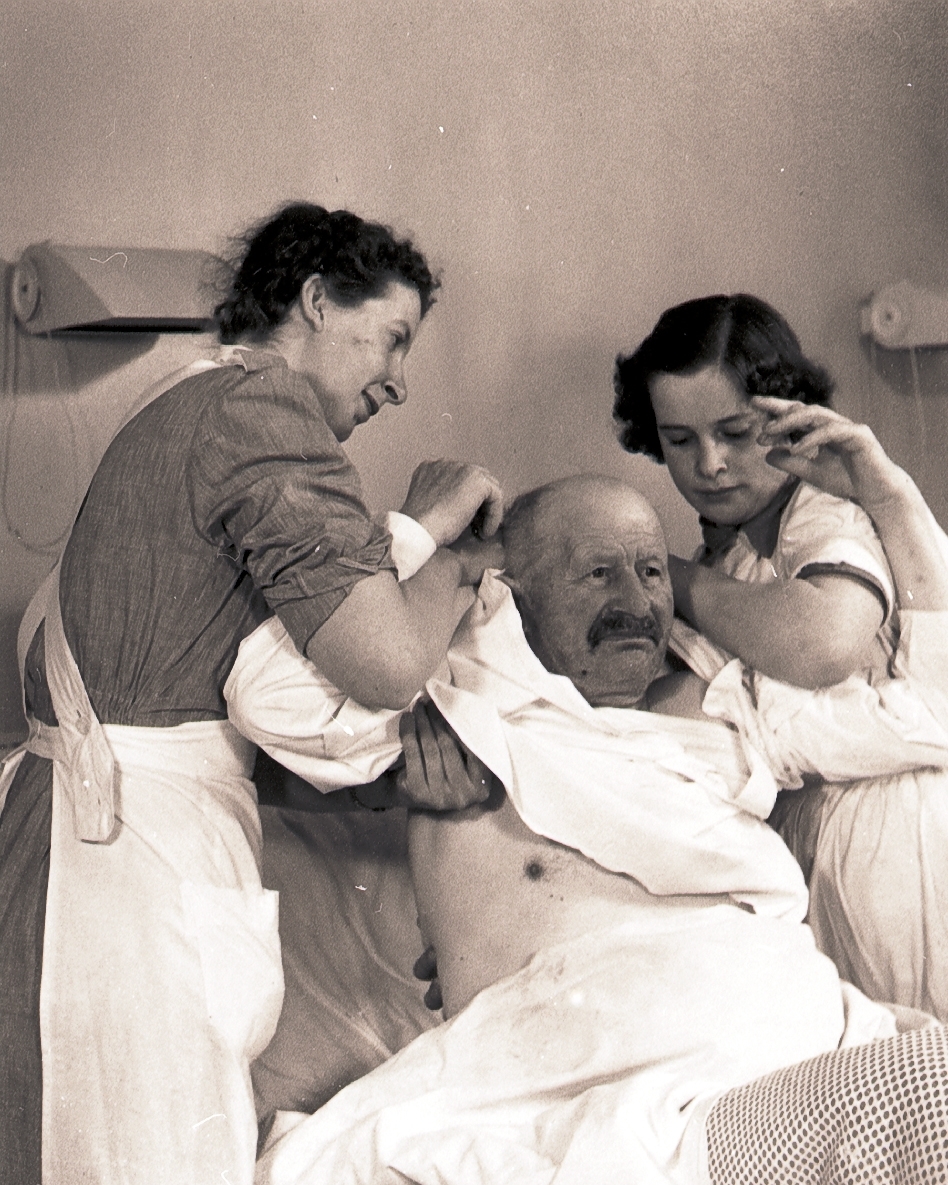 "Skjortbyte" (lasarettet). Från utställningen "Falköping i bild" 1952.