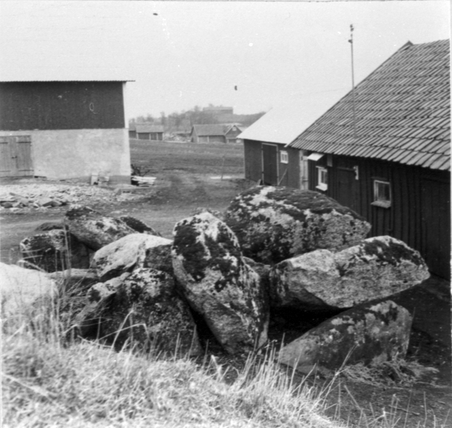 Ledsgården, Slutarp. Gånggrift mellan gårdshusen. Foto från nordnordost från källartaket, efter restaureringen.