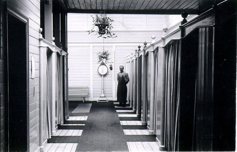 Herrbadets I:a klass. På bilden: Badmästare Arvid Andersson, populärt kallad "Bad-Arvid"