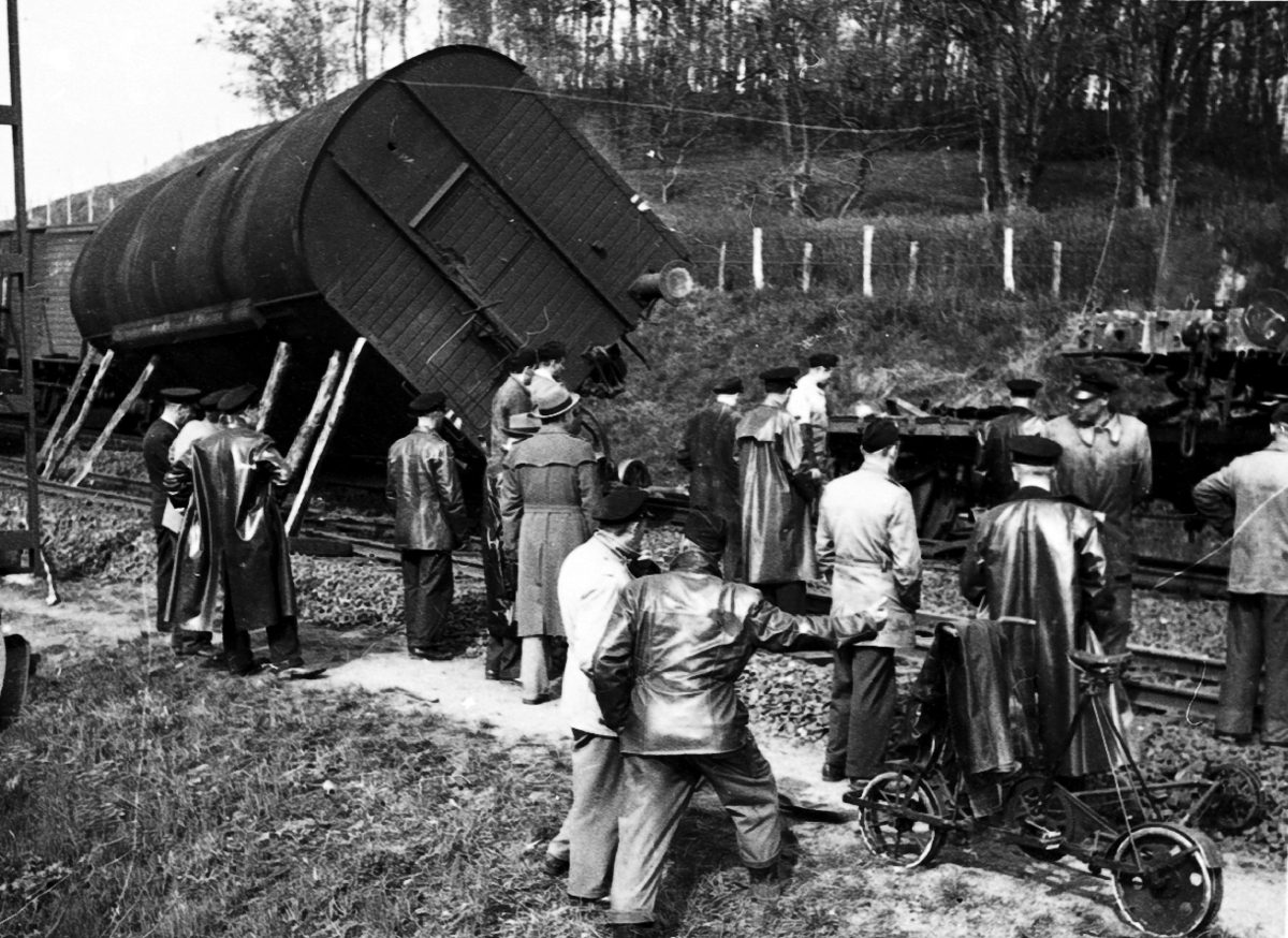 Tågolycka i Torbjörntorp "Tomtakurvan", godståg 1956.