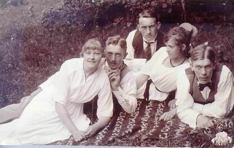 1) t.v. Antagligen Knut Teglöfs hustru Tulli. I mitten Karl Elgh med sedermera hustrun Greta (syster till donator Anders Andersson "Hedda") T.h. Knut Karlsson-Teglöf.