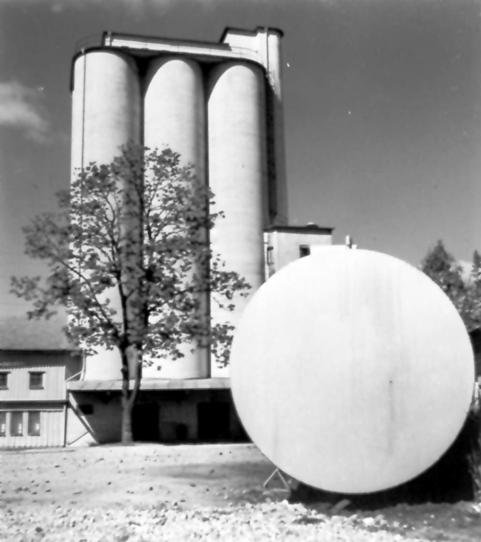 "Cylindrar" (Central-föreningens silotorn vid Balderstensgatan). Från utställningen "Falköping i bild" 1952.