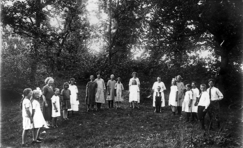"Solglimten" på utflykt. De står i Gårestorps hage, Grolanda.