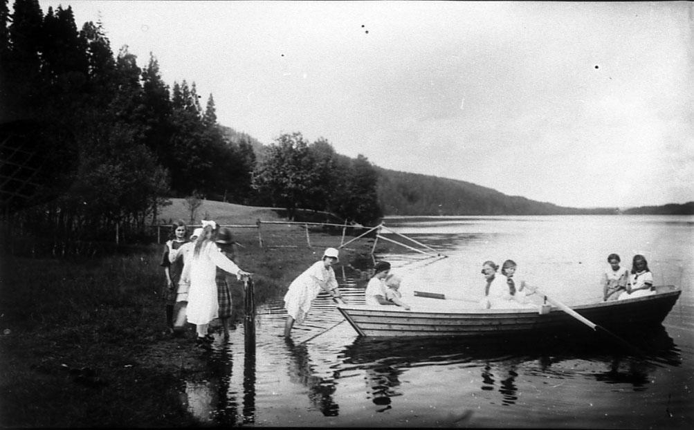 EFS ungdomsförening "Solglimten" på utflykt till Almnäs vid Öresjö, klart för roddtur.