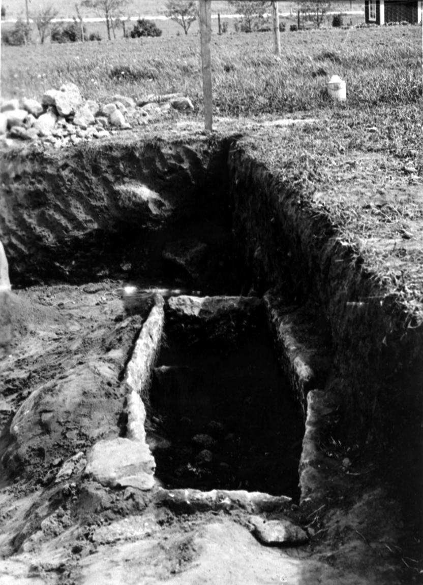 Järnåldershällkista, Bestorp Väster-Nolgården, Kapellsgatan 32, Brissmans tomt, Solliden. Hällkista utgrävd den 6-7 juni 1930 av K.E. Sahlström och Hild. Svensson.
