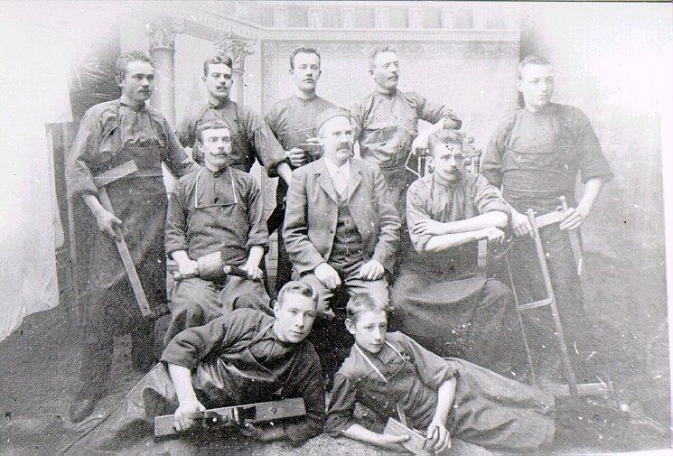 Charles Anderson med sina nio snickare.