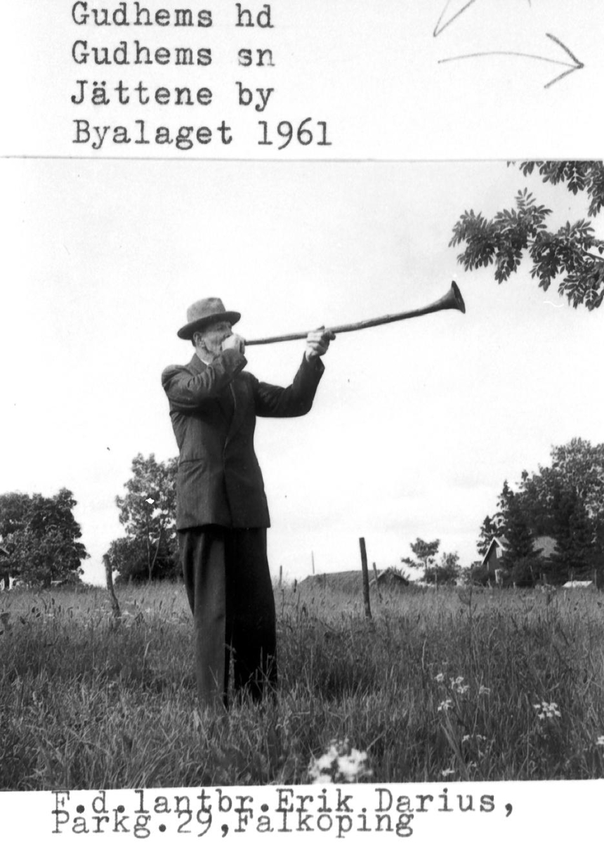 Ålderman f.d. lantbrukare Erik Darius spelar lur.