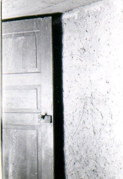 Abrahamsgården. Rappad vägg och gammal dörr på vinden i manbyggnaden.