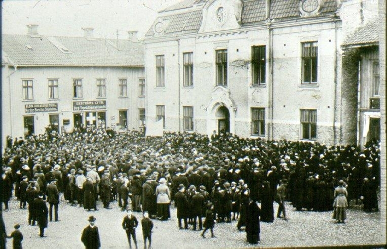 Stora torget, demonstration 1917/18, möjligen livsmedelsdemonstration.