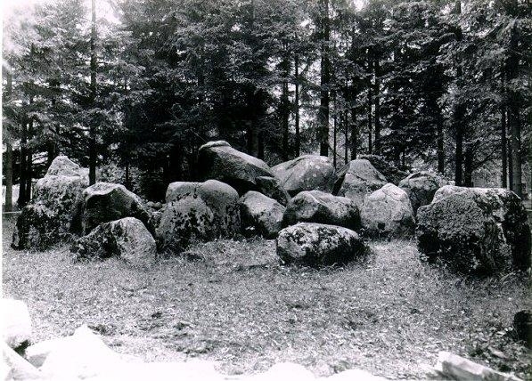 Gånggriften Kyrkerör före restaureringen. Gången till höger. Kammarens södra del till vänster.
