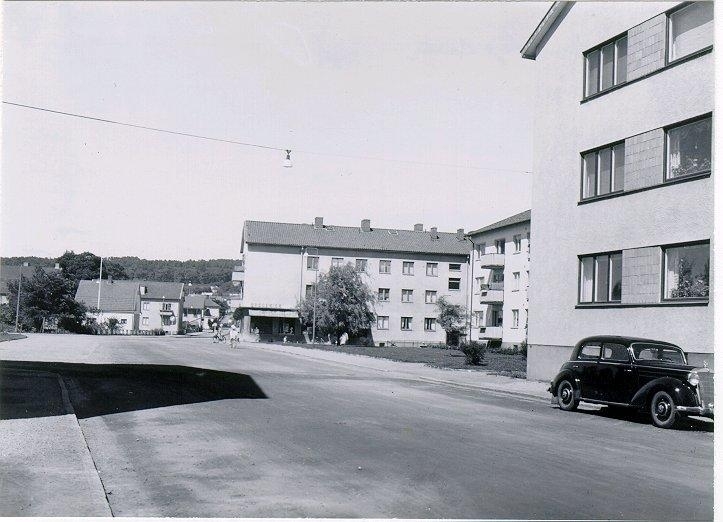 S:t Sigfridsplatsen innan fontänen kom dit. Foto från Wetterlinsgatan mot stationen från höger Wetterlinsgatan 1, S:t Sigfridsplatsen 1 och S:t Sigfridsgatan 42.
