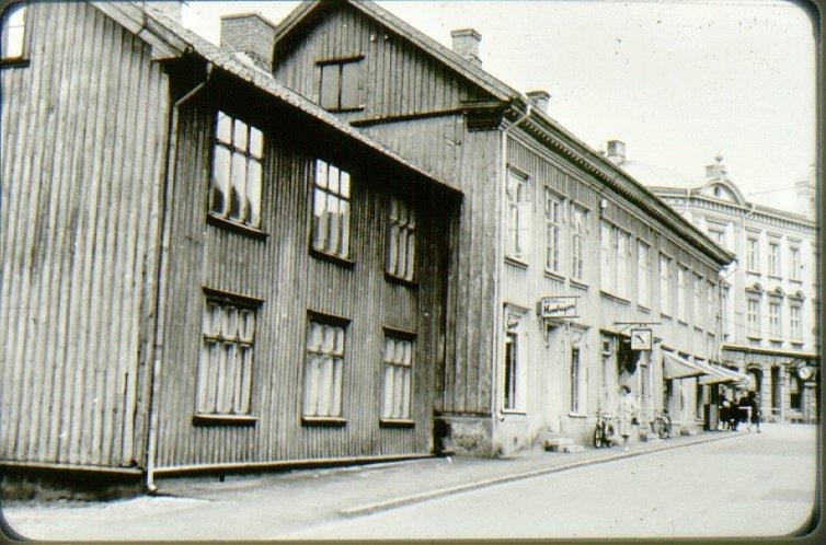 Kv. Gästgivaren, S:t Olofsgatan 3, Jouvins hotell omkring 1964. Före rivningen.