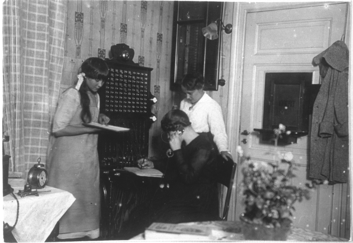 Telefonväxeln i Stenstorp. Fr.v. Anna Karlsson, föreståndare Julia Jonsson samt Gunhild Andersson.