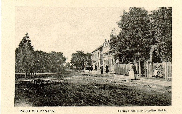 Järnvägsgatan 18, 20. Från höger: Rantens hotellträgård, Eskilstunaboden och Telegrafstationen.
