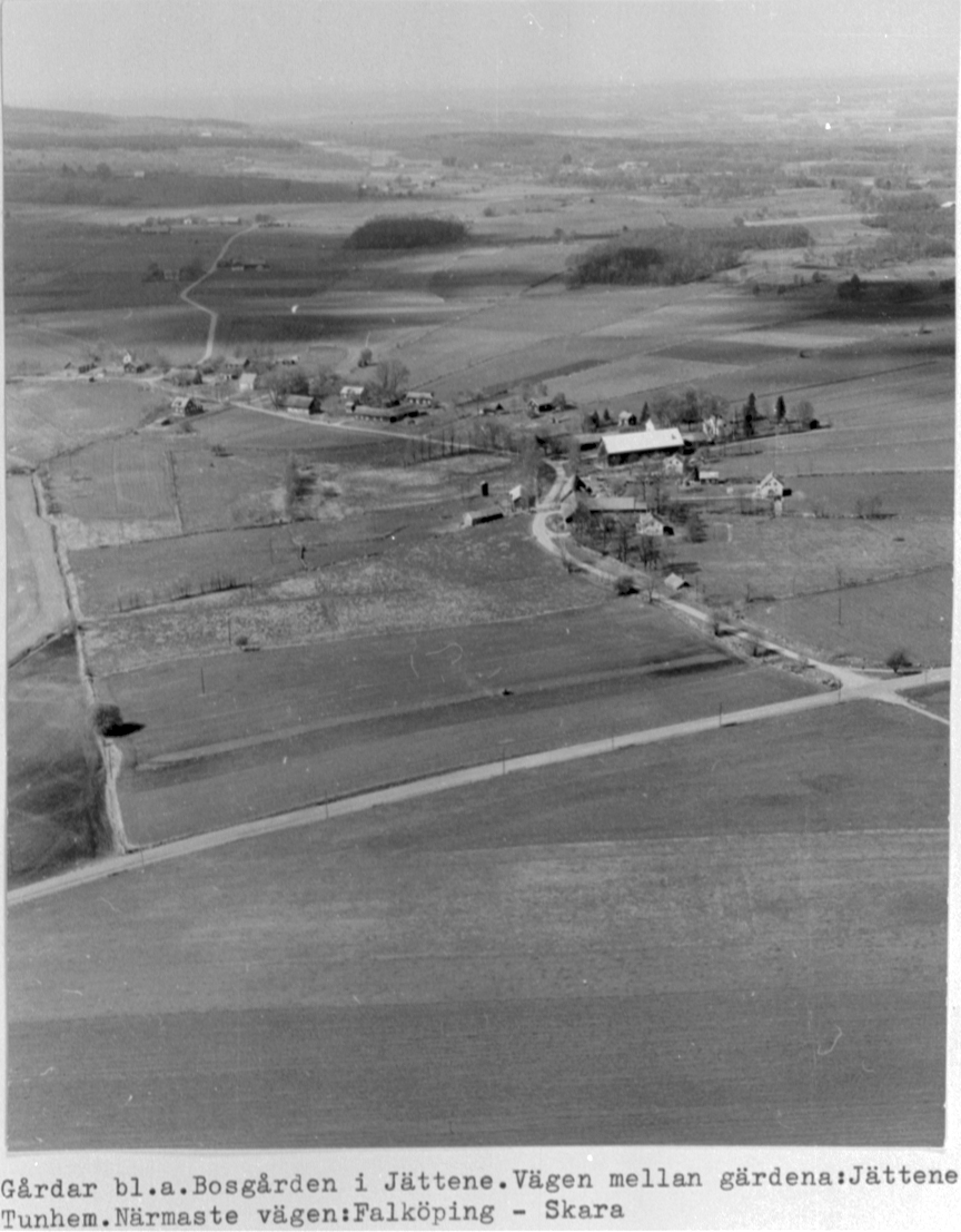 Gårdar bl.a. Bosgården i Jättene. Vägen mellan gärdena: Jättene - Tunhem. Närmaste vägen: Falköping - Skara.
