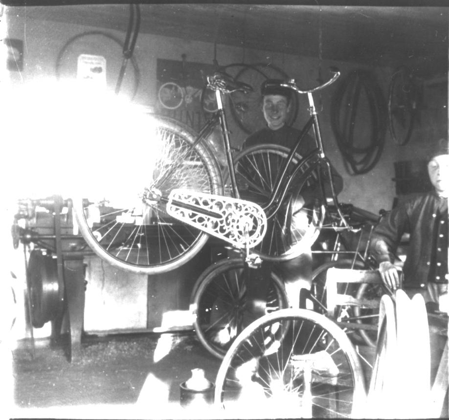Georg Skatts cykelverksatd på Furåsen. Georg och Adel Skatt.