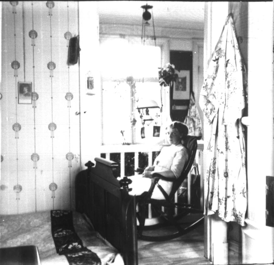 Gullåkra. Övre hallen sedda från barnkammaren på andra våning. Personen okänd.
