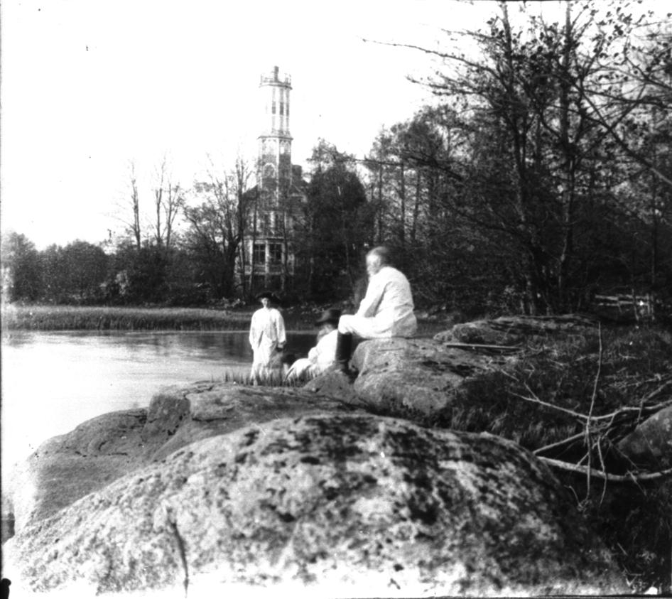 Gullåkra, Badeberget vid kvarnen. Erik Stenholm och två okända.