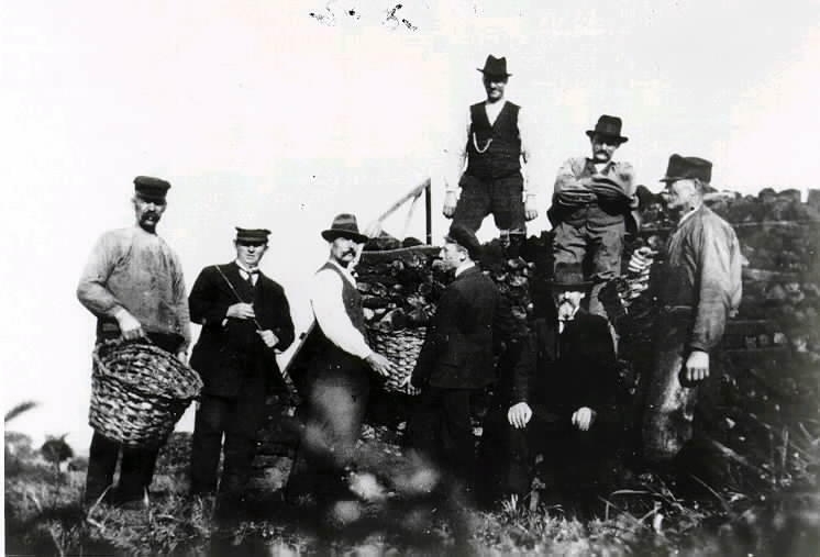 Torvupptagning ute på mossen vid Falköping. J. A. Forss personal. (Fotot trol. taget under bränslekrisen som uppkom under 1:a världskriget.)