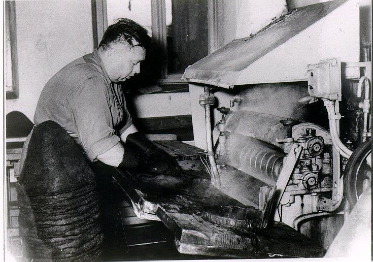 J.A. Forss Hattfabrik. Eftervalkning av hårstump. Tore Adolfsson