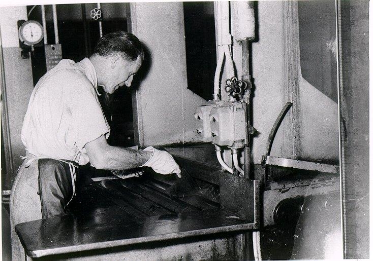 J.A. Forss Hattfabrik. Holger Johansson matar multirollern med hårstump.
