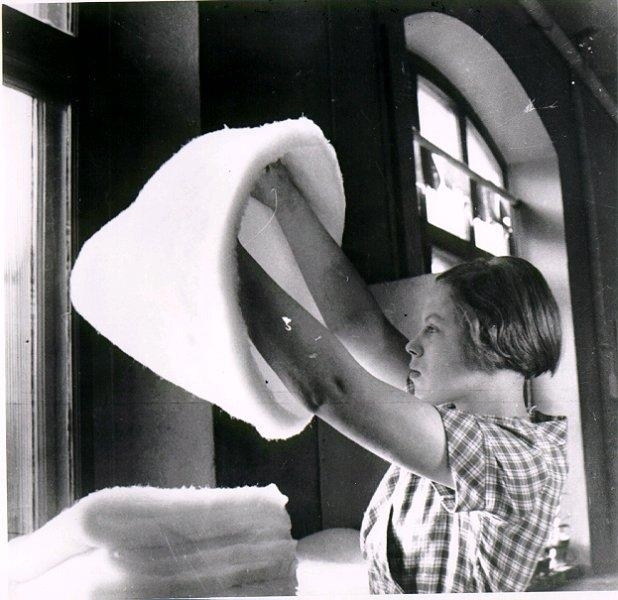J.A. Forss Hattfabrik. Avsyning - kontroll av jämnhet och att det inte finns skräp kvar i materialet.