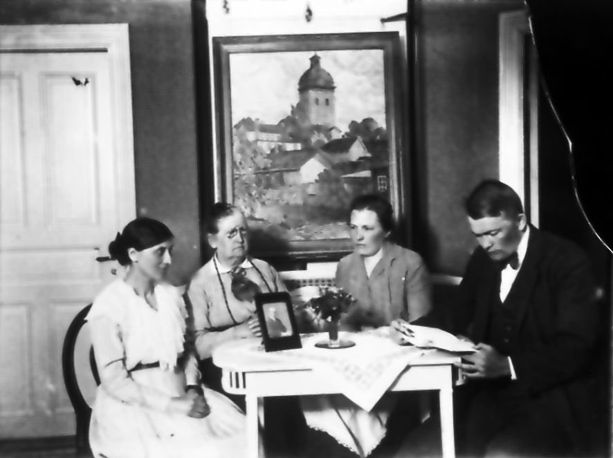 Okänd, Carolina Söderlund, Elsa Jörgensson och Bengt Söderlund. Tavlan föreställer Caroli kyrka i Borås.