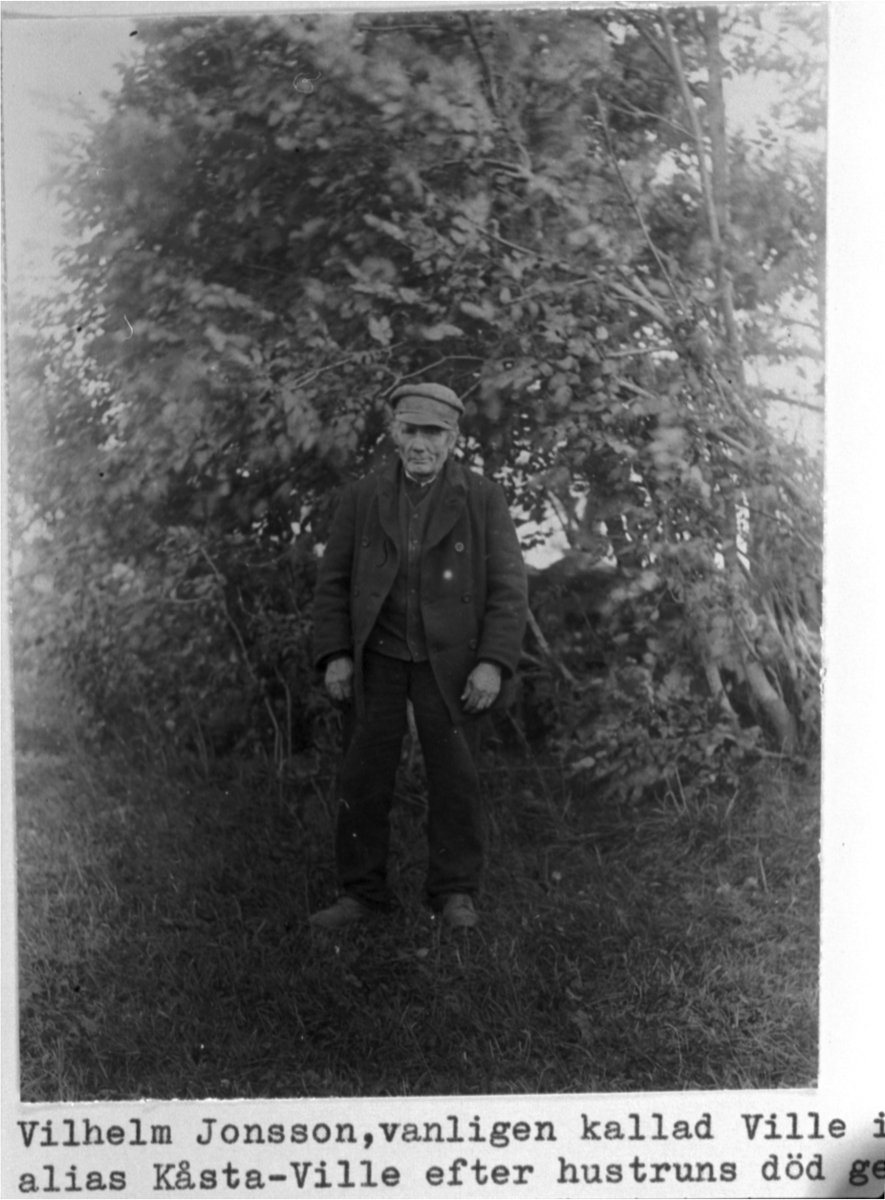 Vilhelm Jonsson, vanligen kallad Ville i murn, alias Kåsta-Ville efter hustruns död genomgången rakning och tvagning.