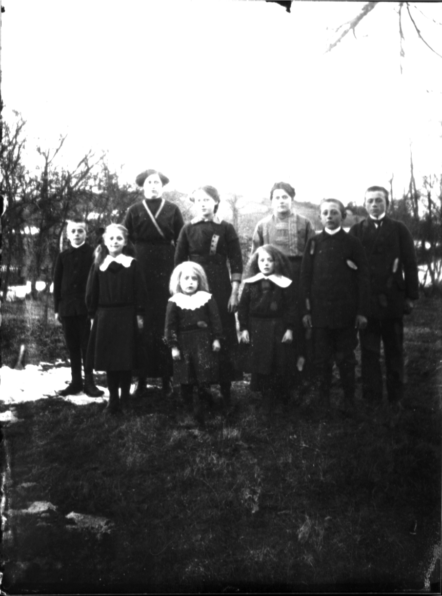 Syskonen Tidén från Stommen Tiarp. Viola, gift Johansson Toragården Tiarp. Edla, gift Käck Prästgården Stenstorp. Frits, Stommen sedan Falköping. Gerda, gift Johansson Smedslätten Mofalla. Ture, Stommen Karleby. Erik, Stommen Tiarp. Tyra, Stockholm. Dagnhild, gift Wilhelmsson Borås. Elna, gift Sjölin Borås.