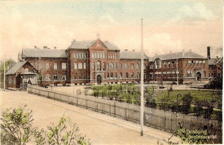 Länslasarettet. Falköpings första lasarett öppnades den 15 oktober 1856. Före detta fanns endast ett länslasarett i Skaraborgs län, nämligen i Mariestad. Förutom bostad för läkare blev det endast 20 platser för den egentliga sjukvården och 10 platser för veneriskt sjuka. Särskild läkarbostad uppfördes 1869-1870. Den 8 januari 1881 uppläts en nybyggnad till upptagningsanstalt för sinnessjuka i Falköping. Helt nytt länslasarett invigdes 10 januari 1905. Den drivande kraften för dess tillkomst var dåvarande läkaren dr A.P. Westerberg. 97 patienter kunde nu inrymmas på lasarettet. Efter fullständig inredning fanns plats för 160 sjuksängar. Epidemisjukhus öppnades 1926 med 66 sjukplatser. Lasarettet har härefter ett flertal gånger utvidgats genom till- och ombyggnader, främst år 1935 och 1946-47.