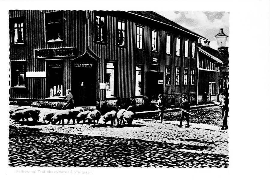 Trafikbekymmer - småpojkar vallar grisar, de drevs mornar och kvällar genom staden till och från betena.