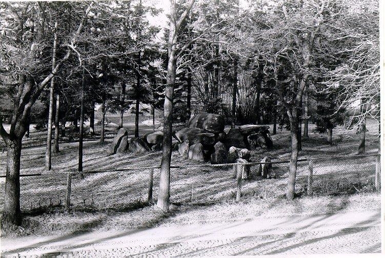 Planteringsförbundets park, S:t Olofsgatan. Gånggriften Kyrkerör restaurerad 1928.