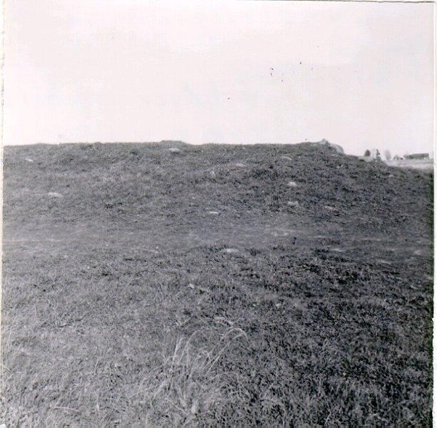 Nolgården. Har tidigare tillhört Falköpings östra, "Lågkakestan". En underlig backe på Falan. Till höger på bilden en stuga och ladugård tillhörande Nolgården, Gunnestorp.