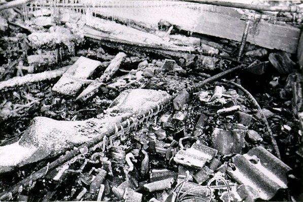 Kv. Källarmästaren, Storgatan 3. Veramagasinet, "Munkagården", efter branden i december 1963.