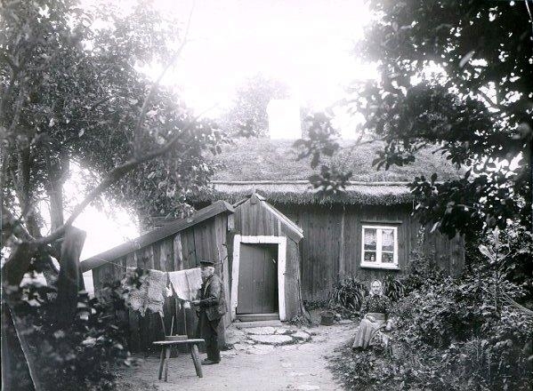 Gamle fårskinnsgarvare Sjögrens stuga. Endast tolv skilling kostade beredningen av ett skinn, och likväl kunde gubben i detta ruckel uppfostra 10 barn, som alla växte upp till präktiga medborgare.