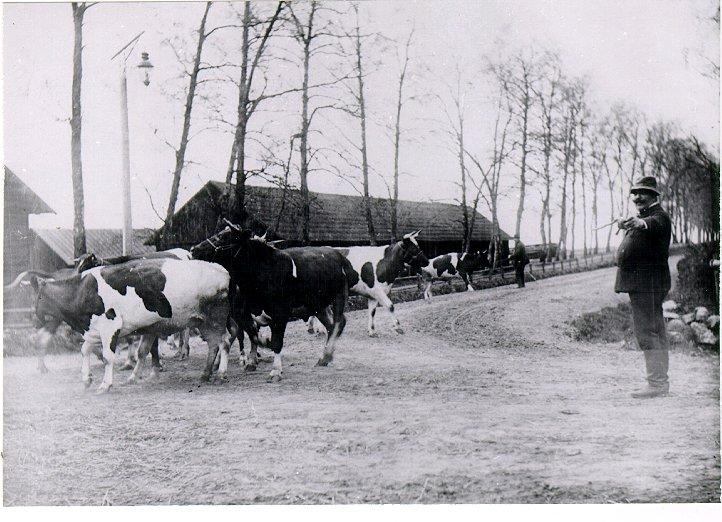 Dagsnäs. Korna skall in i ladugården. Lars Ekberg hjälper till att mota.