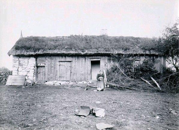 Gammal stuga med ladugård. Sjukvårdskorpral Dahls stuga under Stora Halla.