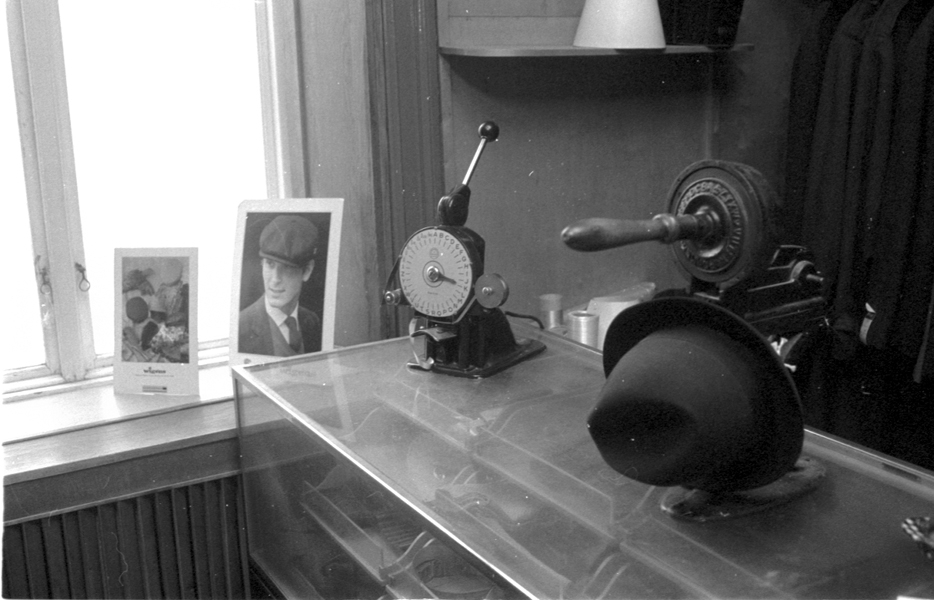 Sjölins Hatt- och mössaffär vid nedläggningen.