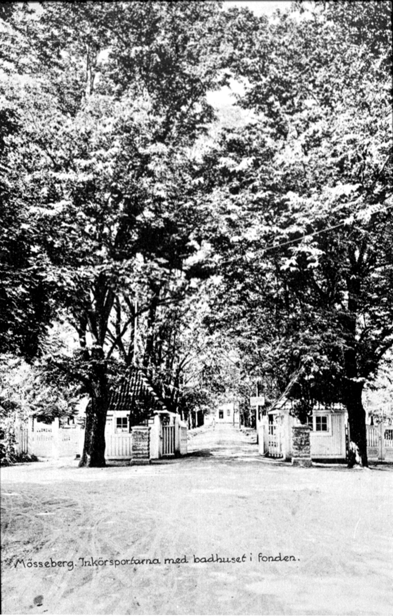 Inkörsportarna med badhuset i fonden.