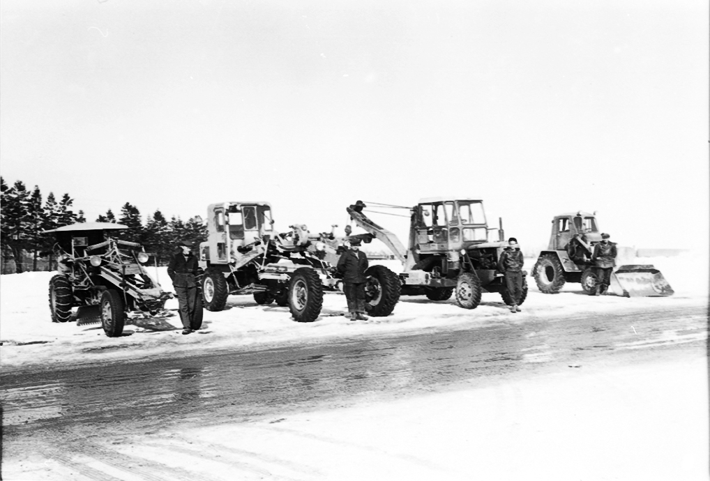 Framför maskiner: Alf Ström, Sixten Wallström, Olof Roslund, Erik Danielsson.