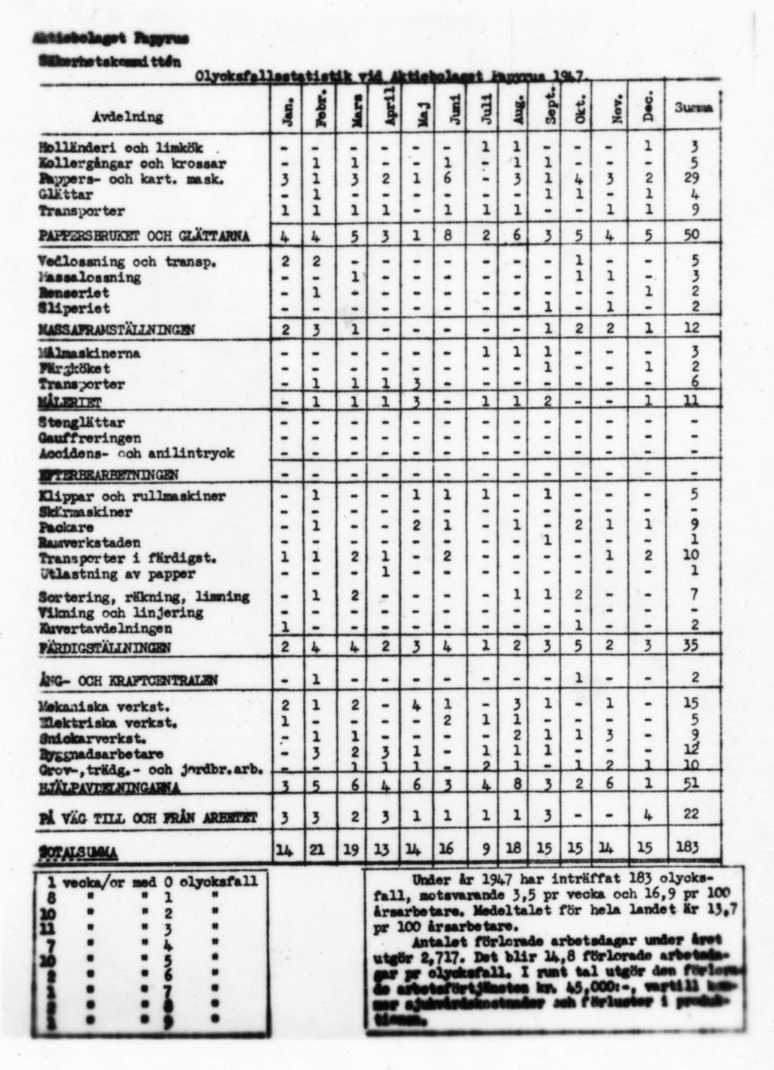 Säkerhetstjänst, olycksfallsstatistik. 1947