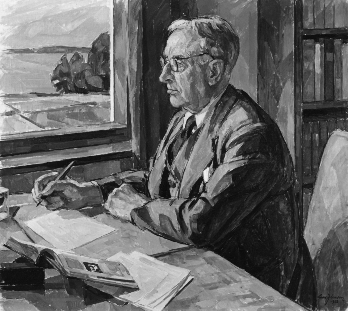 Målning, porträtt. Signerad Lasse Johansson 1958.