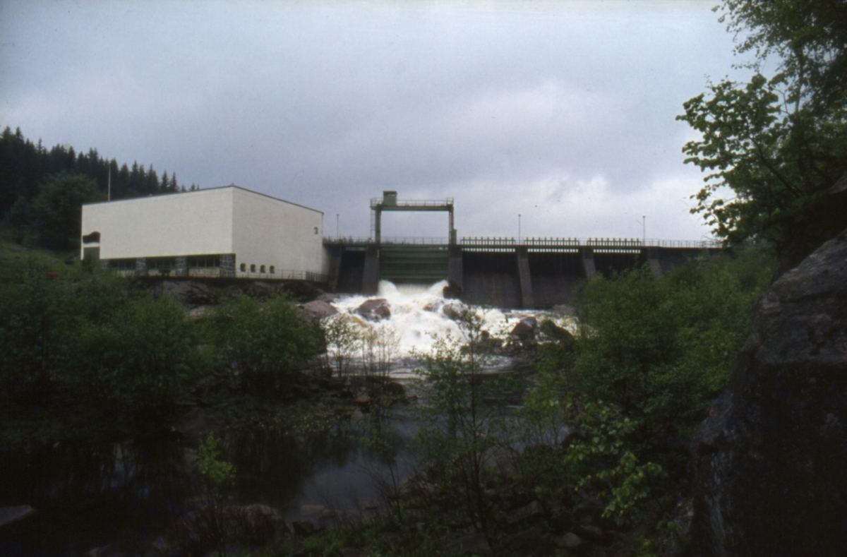Bällforsens kraftstation vid Ätran, exteriör. Årsberättelse 1979.