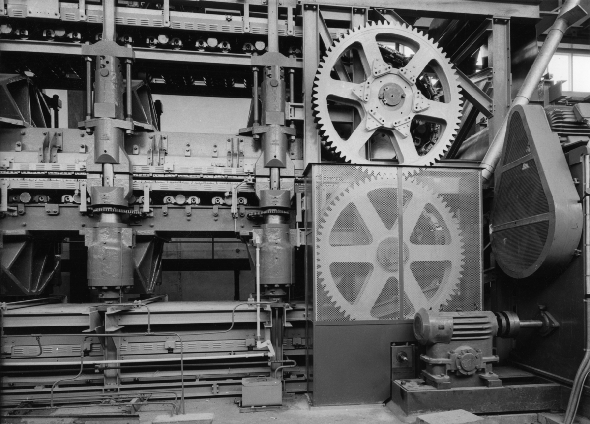 Ry Aktiebolag, spånskivefabrik. Detalj av press.