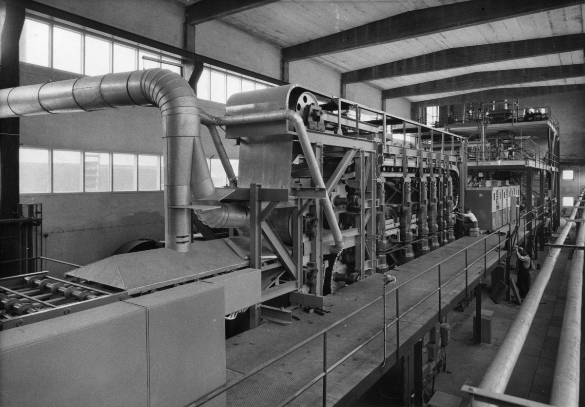 Ry Aktiebolag, spånskivefabrik. Pressbyggnad, interiör.