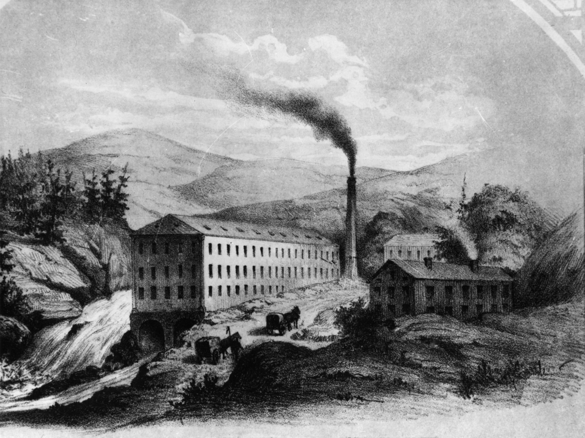 Mölndals Spinneri A.B. vid Götaforsliden. Litografi.