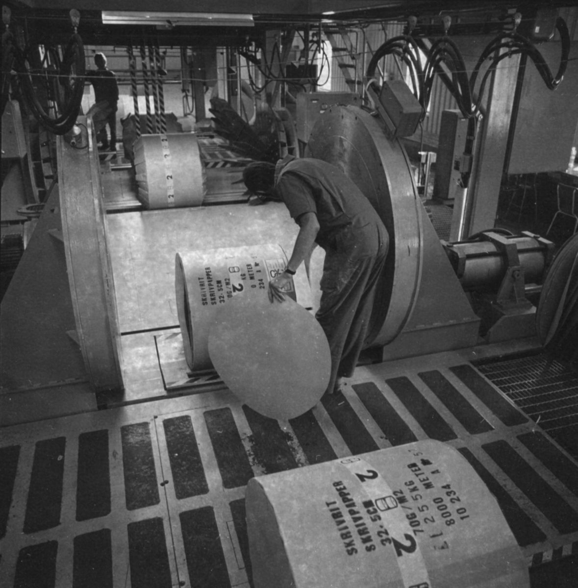 Interiörbild från Papyrus Nymölla AB. Rullpackning.